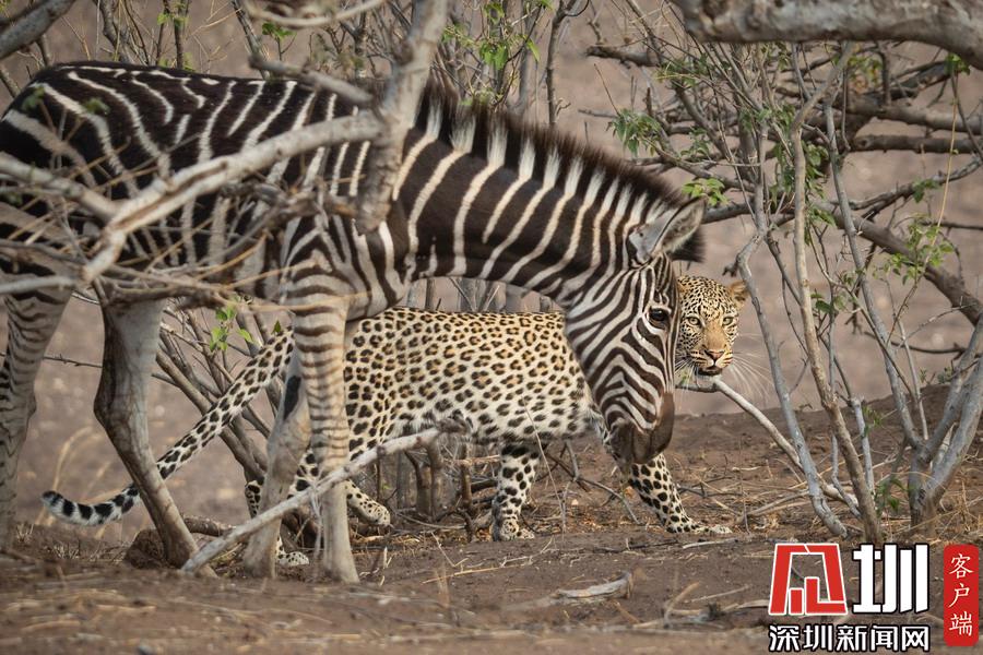 獵豹仿佛和斑馬成為了好友,緊緊跟隨這個(gè)新伙伴一起行走。