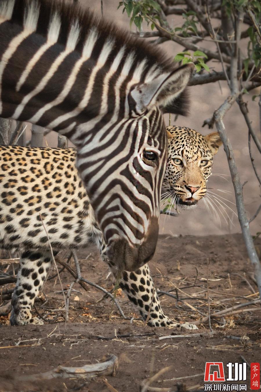 來自美國新墨西哥州的Kevin Dooley在博茨瓦納用相機(jī)記錄下奇怪的一幕,一頭獵豹首次嘗試獵捕斑馬時(shí)失敗了,它變得很沮喪,最終放棄再次獵捕的機(jī)會(huì),似乎要和斑馬休戰(zhàn)。