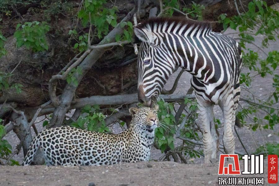 獵豹仿佛和斑馬成為了好友,緊緊跟隨這個(gè)新伙伴一起行走,最終斑馬將“屁股”對(duì)準(zhǔn)了獵豹的頭部,而獵豹似乎在聞味道。