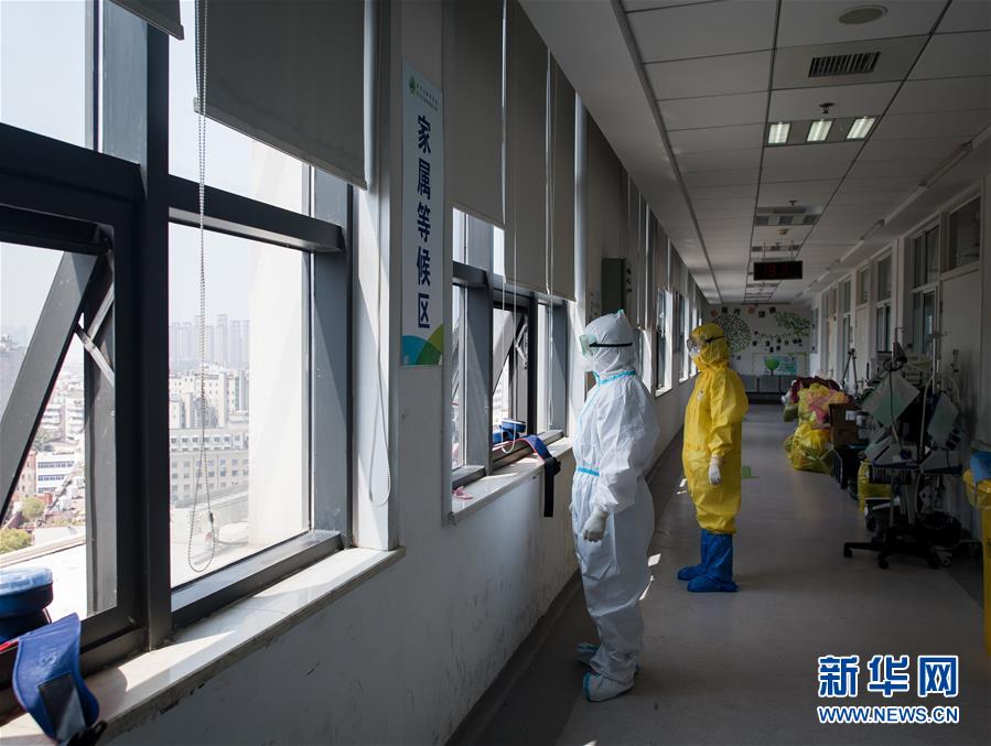 3月19日,在武漢市肺科醫(yī)院隔離病房,醫(yī)護人員在窗邊小憩。 新華社記者 肖藝九 攝
