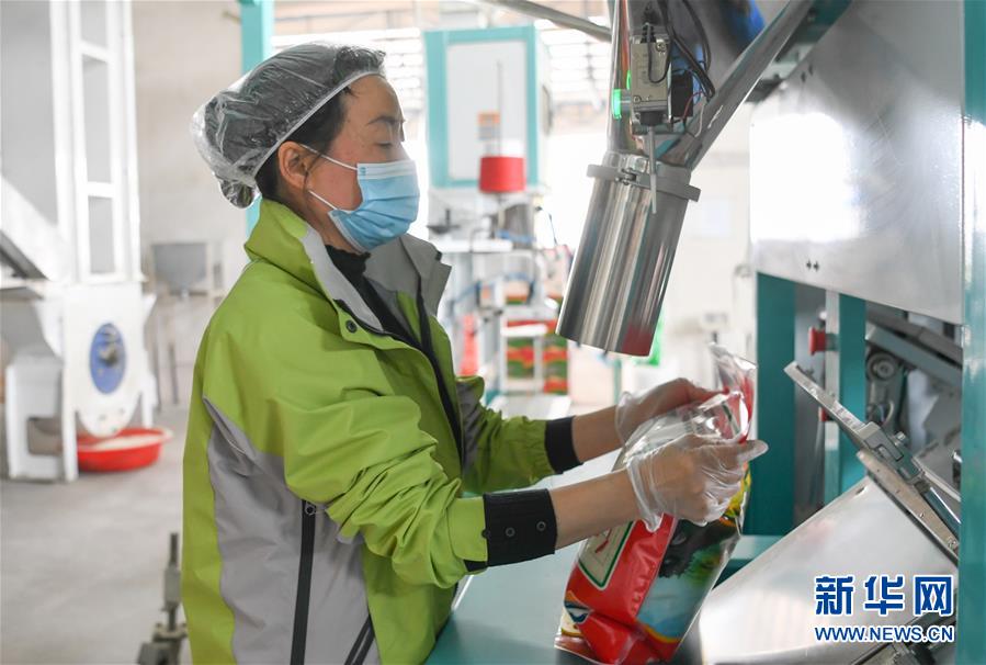 湖北當陽市壩陵辦事處群華村村民宋發(fā)林(右)和妻子在農(nóng)產(chǎn)品合作社包裝產(chǎn)品,準備通過電商外銷(3月21日攝)。近日,湖北當陽市農(nóng)業(yè)生產(chǎn)和農(nóng)產(chǎn)品加工加速恢復。截至3月19日,當陽市86家規(guī)上農(nóng)產(chǎn)品加工企業(yè)復工復產(chǎn)率為84.9%,51家農(nóng)業(yè)產(chǎn)業(yè)化重點龍頭企業(yè)有48家復工復產(chǎn),占比達94.1%。新華社記者程敏攝