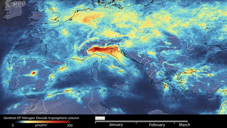 歐洲航天局介紹,雖然這個數(shù)據(jù)會因為云量和天氣的變化而產(chǎn)生微小浮動,但可以相信的是,從二氧化氮排放的減少可以看出意大利封城后交通和工業(yè)活動在變少。