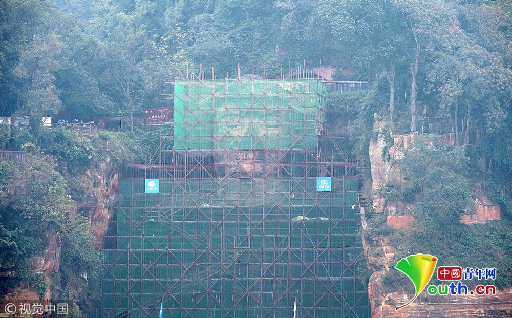 樂山大佛本體已全遮蔽胸腹開裂病害原因基本查明