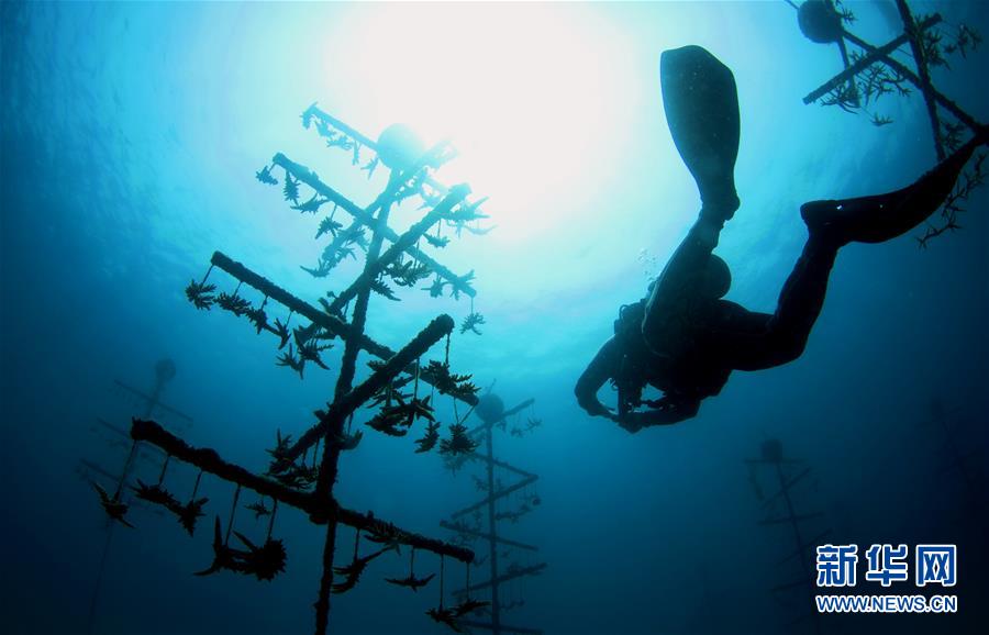 3月28日,在位于海南三亞蜈支洲島旅游區(qū)的海洋牧場(chǎng),工作人員在進(jìn)行巡護(hù)。近日,位于海南三亞蜈支洲島旅游區(qū)的海洋牧場(chǎng)復(fù)工,海底作業(yè)逐漸恢復(fù)正常,開(kāi)始進(jìn)行人工魚(yú)礁吊裝擺位、水下監(jiān)控清理以及日常巡護(hù)等工作。據(jù)介紹,人工魚(yú)礁有利于魚(yú)類(lèi)種類(lèi)增加和數(shù)量提高,蜈支洲島海域海洋牧場(chǎng)人工魚(yú)礁表面附著珊瑚、貝類(lèi)、藻類(lèi)等生物種類(lèi)達(dá)120余種。新華社記者楊冠宇攝