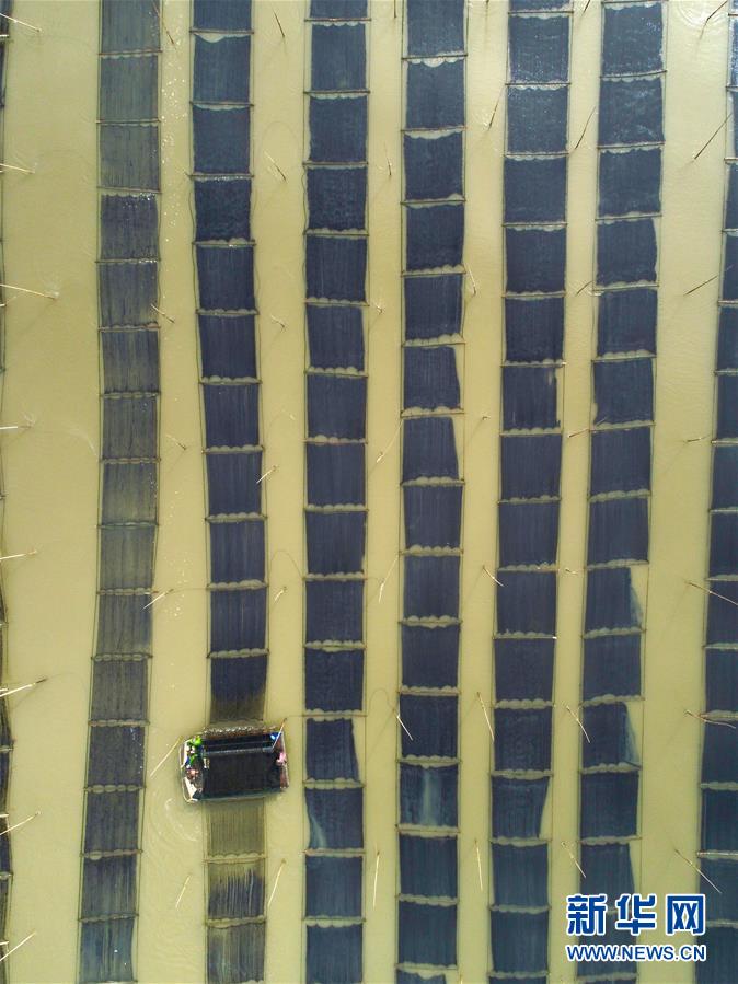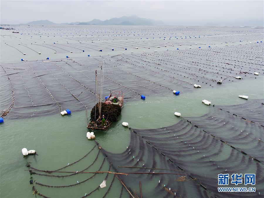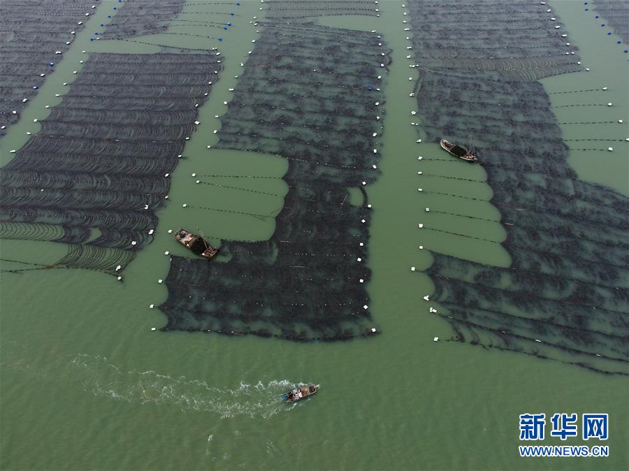 近日,福建省莆田市湄洲灣北岸蔣山村的2000多畝種植紫菜進入收割旺季,當?shù)卮迕駬屖疹^水紫菜。蔣山村現(xiàn)有200多家紫菜種植戶,紫菜種植成為當?shù)卮迕裨鍪罩赂坏闹饕a(chǎn)業(yè)。