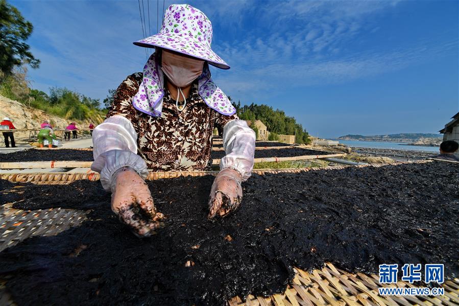 10月24日,福建莆田蔣山村村民在曬紫菜。 新華社記者張國俊攝