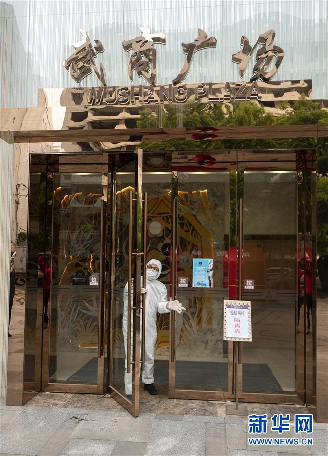 3月30日,在武商世貿(mào)廣場,工作人員在開門前進行最后的消殺工作。當日,武漢市多家商場開門迎客。新華社記者費茂華攝