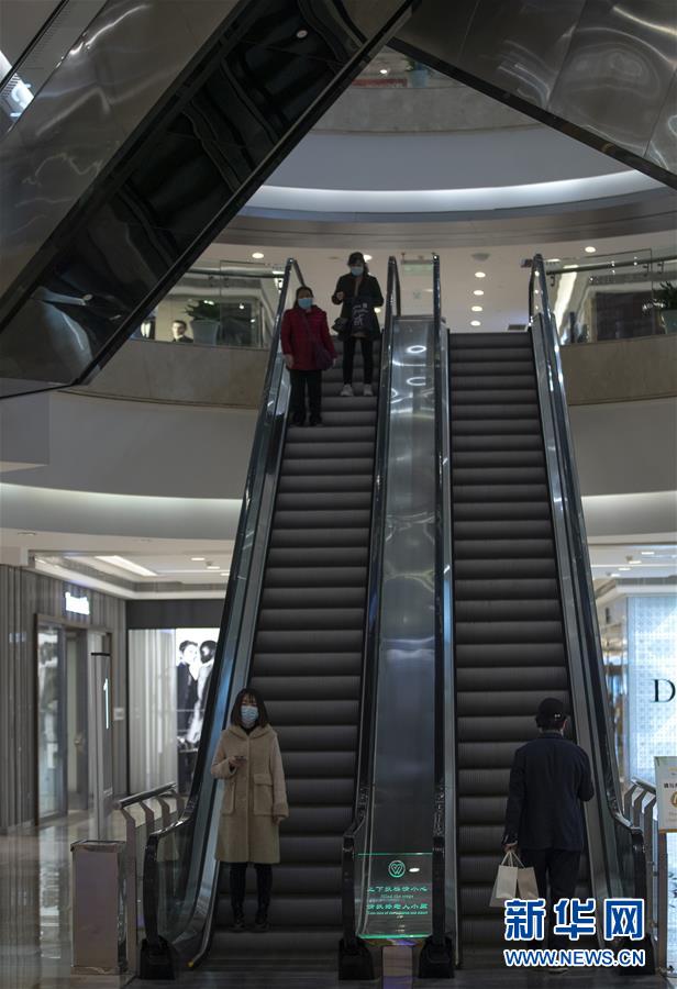 3月30日,在武商國(guó)際廣場(chǎng),顧客乘坐滾梯。當(dāng)日,武漢市多家商場(chǎng)開(kāi)門迎客。新華社記者費(fèi)茂華攝