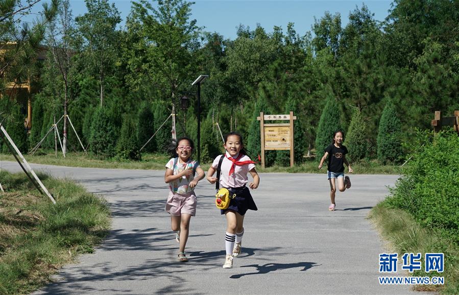 小學(xué)生們?cè)谇晷懔謨?nèi)玩耍(8月29日攝)。新華社記者牟宇攝