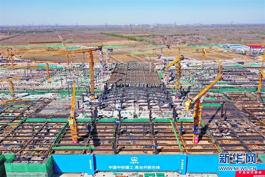 這是3月25日拍攝的京雄城際鐵路雄安站施工現(xiàn)場(chǎng)。新華社記者牟宇攝