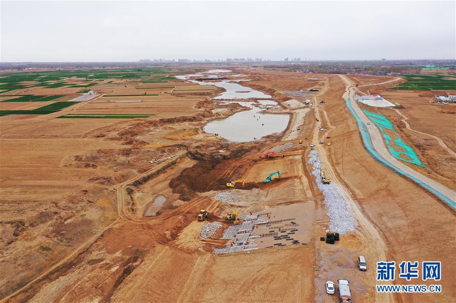 這是3月26日拍攝的雄安新區(qū)南拒馬河防洪治理工程(容城段)施工現(xiàn)場(chǎng)(無(wú)人機(jī)照片)。新華社記者楊世堯攝
