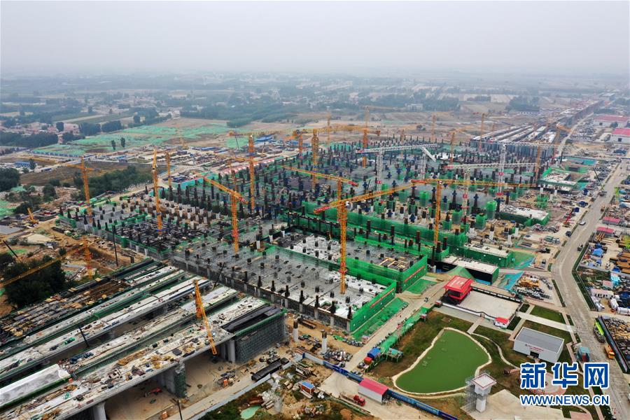 建設(shè)中的雄安站(10月10日無人機(jī)拍攝)。新華社記者邢廣利攝