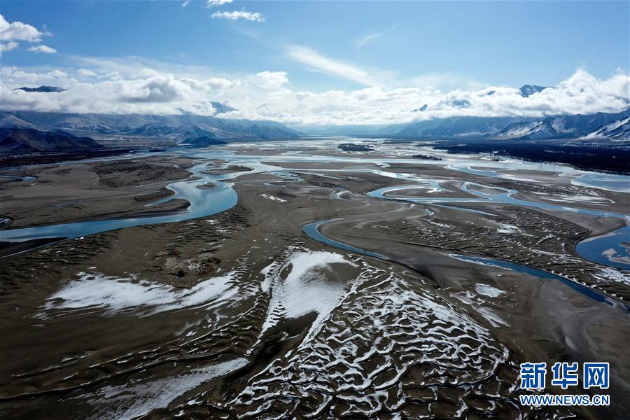 這是3月24日拍攝的雅魯藏布江雪景(無人機照片)。新華社記者普布扎西攝