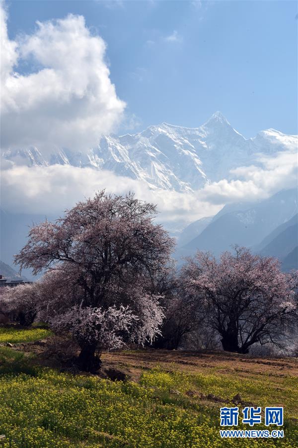 南迦巴瓦峰下盛開的桃花(4月1日攝)。新華社記者侯捷攝