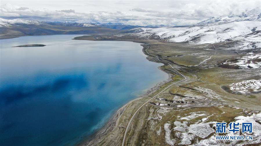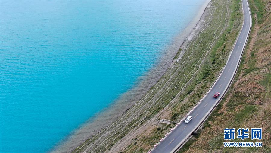 普姆雍錯湖緊挨著公路,是自駕游的理想目的地(9月19日無人機拍攝)。新華社記者晉美多吉攝