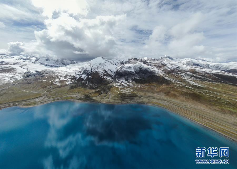 8月31日無人機拍攝的羊卓雍錯風(fēng)光。新華社記者晉美多吉攝