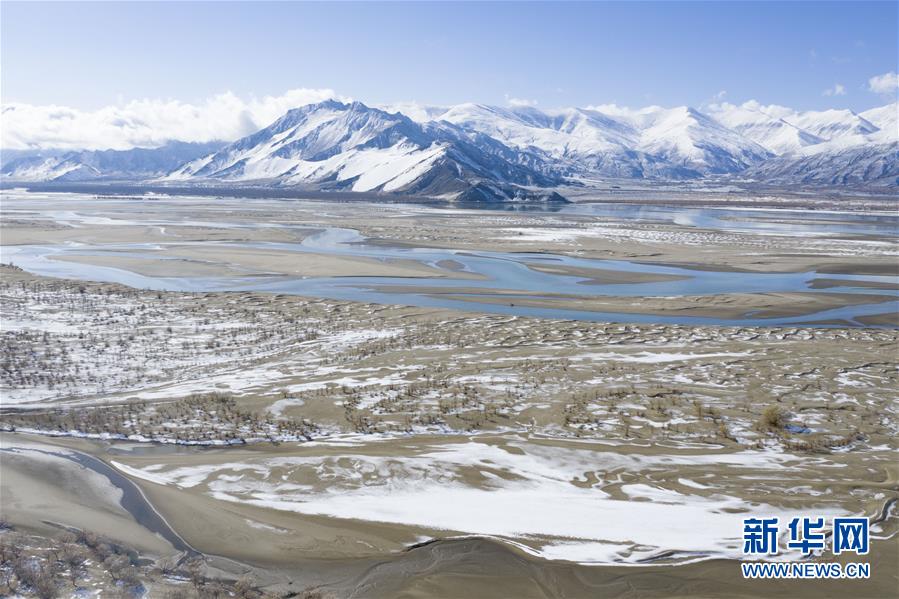 這是3月24日拍攝的雅魯藏布江雪景(無人機照片)。新華社記者孫非攝