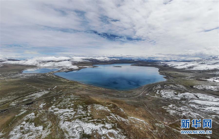 9月24日無人機拍攝的拿日雍錯。拿日雍錯位于西藏山南市錯那縣北部,海拔4900米,像藍寶石般鑲嵌在雪山草原之間。新華社記者晉美多吉攝