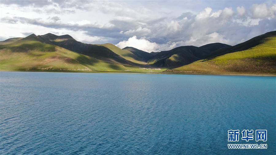 8月31日無人機拍攝的羊卓雍錯風(fēng)光。新華社記者晉美多吉攝