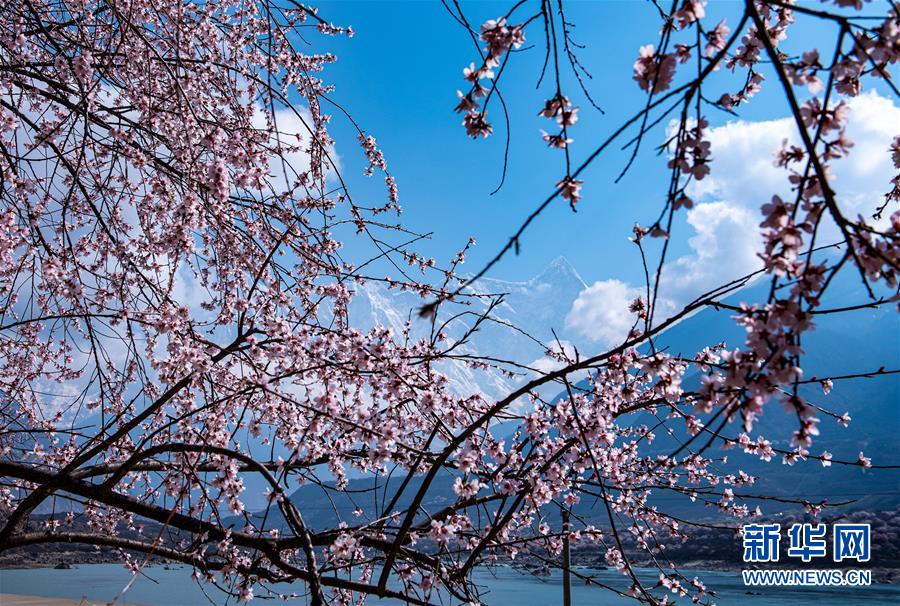 南迦巴瓦峰下盛開的桃花(4月1日攝)。新華社記者侯捷攝