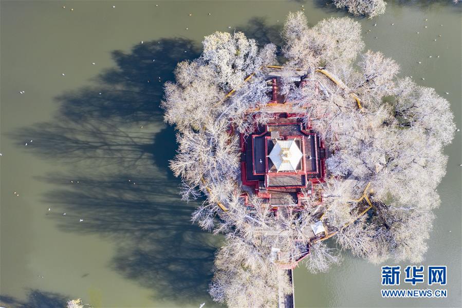 4月5日拍攝的拉薩宗角祿康公園雪景(無人機照片)。新華社記者普布扎西攝
