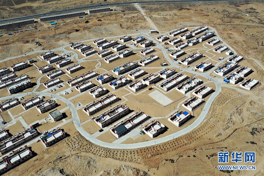 拉薩市堆龍德慶區(qū)古榮鄉(xiāng)榮瑪高海拔生態(tài)搬遷點一景(4月1日攝,無人機照片)。新華社記者 詹彥 攝