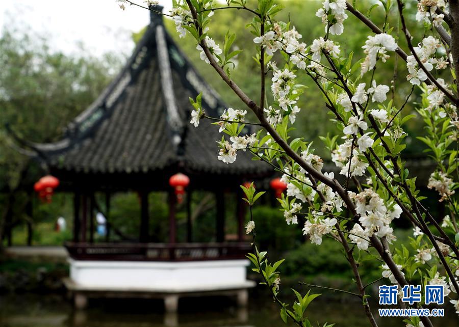在位于上海松江的江南古典園林——醉白池,春花與古建筑相映襯(4月6日攝)。清明假期,上海的古典園林景點(diǎn)在做好防疫措施的同時,有序開放運(yùn)營。在粉墻黛瓦、春色滿園中,游人們欣賞濃濃春意,感受古色古香。 新華社記者 劉穎 攝