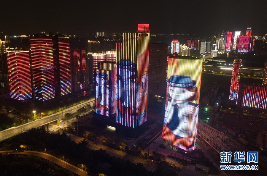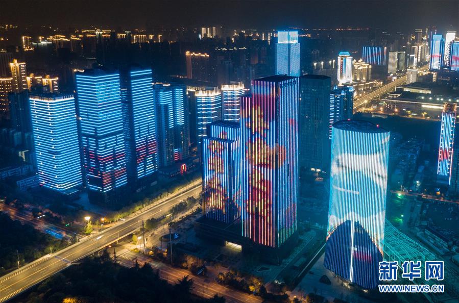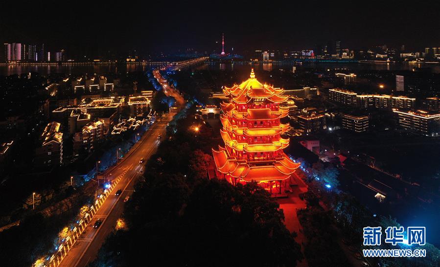 4月8日零時(shí)起,武漢市正式解除離漢離鄂通道管控措施,全市景觀照明開啟(無人機(jī)拍攝)。新華社記者程敏攝