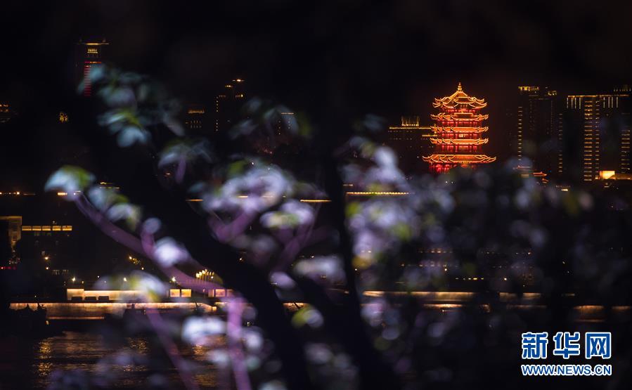 這是4月7日晚在武漢龜山拍攝的黃鶴樓夜景。新華社記者肖藝九攝
