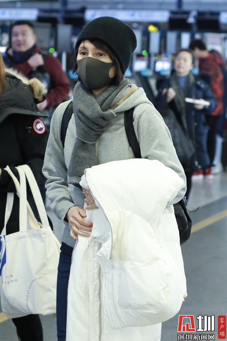2019年1月5日,北京,袁泉現(xiàn)身機(jī)場。