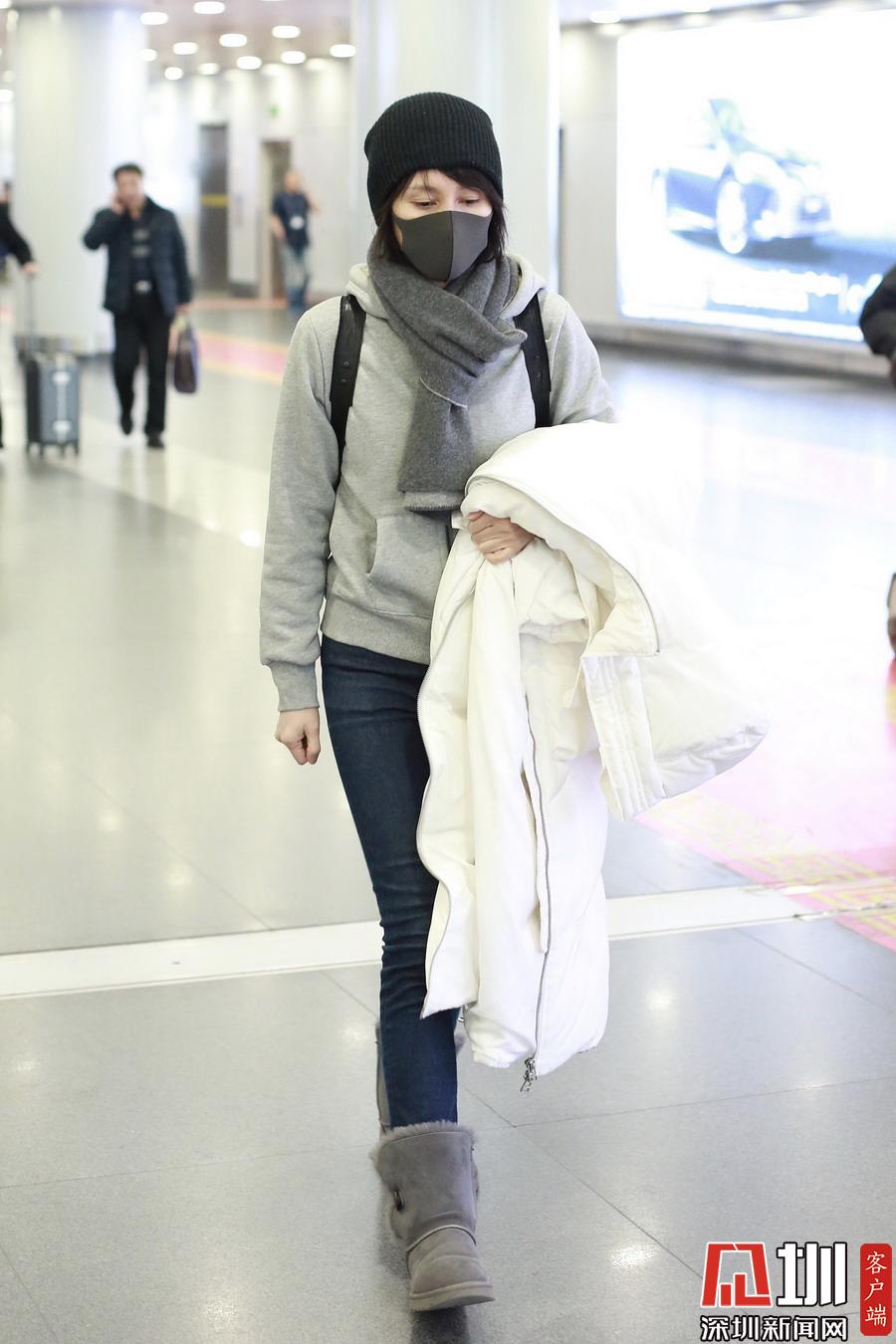 2019年1月5日,北京,袁泉現(xiàn)身機場。