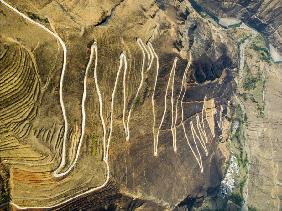 航拍云南山區(qū)“魔鬼公路” 在原地盤(pán)旋海拔下降1200米