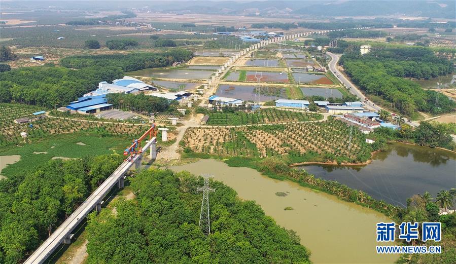 位于西雙版納傣族自治州景洪市的橄欖壩特大橋橫穿傣族村落,多用隧道和橋梁形式通過,最大程度減少土地占用,有效保護當?shù)厣鷳B(tài)環(huán)境,形成與山川同美的生態(tài)線(4月12日無人機拍攝)。新華社記者秦晴攝
