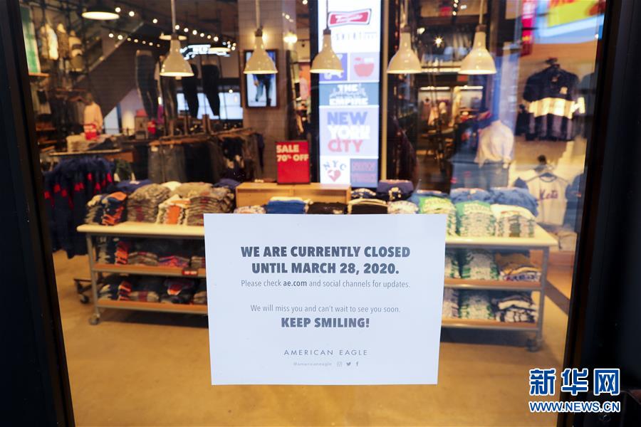3月21日,在美國紐約時報廣場,一家服裝店貼出閉店告示。美國紐約州、伊利諾伊州、康涅狄格州20日發(fā)布針對本州居民的“居家令”,以遏制新冠病毒傳播。這些“居家令”涵蓋紐約、洛杉磯、芝加哥等大城市,影響數(shù)千萬人。白宮20日發(fā)表聲明說,總統(tǒng)特朗普已宣布紐約州出現(xiàn)“重大災(zāi)難”,命令聯(lián)邦政府支援該州抗擊新冠肺炎疫情。新華社記者王迎攝