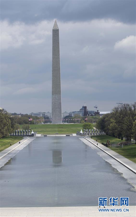 4月8日,在美國首都華盛頓,華盛頓紀(jì)念碑周圍游人稀少。新華社記者劉杰攝