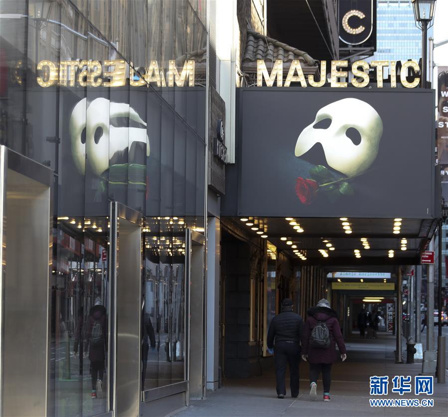 3月21日,在美國紐約百老匯劇院區(qū),人們從冷清的街道走過。新華社記者王迎攝