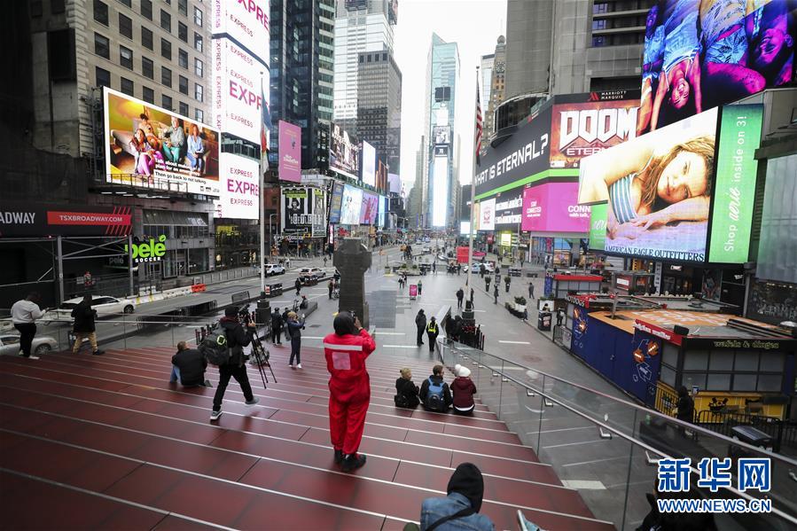 3月19日,人們在冷清的美國紐約曼哈頓時(shí)報(bào)廣場上參觀。美國約翰斯·霍普金斯大學(xué)發(fā)布的實(shí)時(shí)統(tǒng)計(jì)數(shù)據(jù)顯示,截至美國東部時(shí)間19日17時(shí)30分(北京時(shí)間20日5時(shí)30分),美國新冠肺炎確診病例累計(jì)13060例,死亡175例。受新冠肺炎疫情影響,紐約等疫情嚴(yán)重的地區(qū)執(zhí)行多項(xiàng)減少人口聚集的措施,昔日的鬧市如今已冷冷清清。新華社記者王迎攝