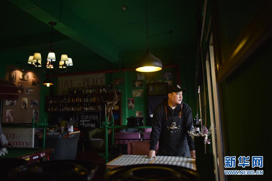 4月10日,才仁俄賽在餐廳向外張望。新華社記者吳剛攝