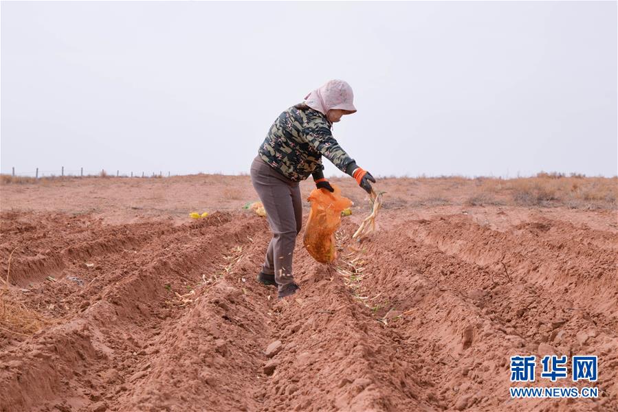 4月15日,農(nóng)民在杭錦旗道勞呼都格嘎查的農(nóng)田里播撒紅蔥苗。春種時節(jié),在內(nèi)蒙古鄂爾多斯市杭錦旗道勞呼都格嘎查,農(nóng)民忙著播種紅蔥。在鄂爾多斯高原種植的紅蔥耐旱耐寒,具有較好的經(jīng)濟效益。新華社記者徐欽攝