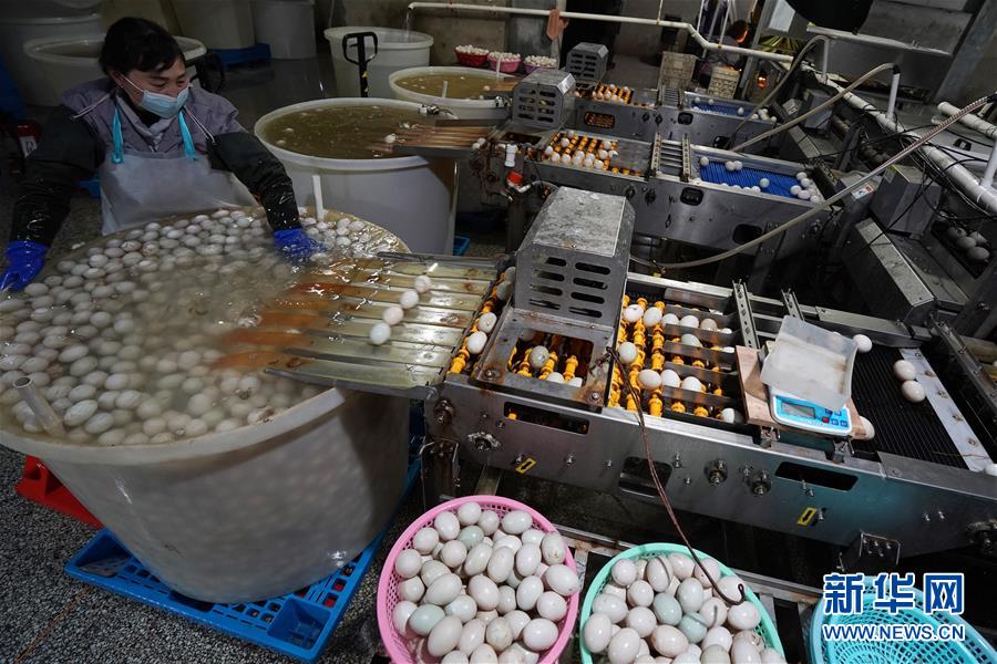 江蘇高郵鴨集團(tuán)的工作人員在生產(chǎn)車間內(nèi)清洗分揀鴨蛋(4月15日攝)。“高郵鴨蛋”是江蘇高郵的特色農(nóng)業(yè)名片。近年來(lái),當(dāng)?shù)卦诹挤N繁育、生態(tài)養(yǎng)殖、產(chǎn)品加工等方面加大力度,推動(dòng)高郵鴨蛋品牌化建設(shè),讓小鴨蛋成為帶動(dòng)農(nóng)戶致富的大產(chǎn)業(yè)。2019年,高郵市共計(jì)生產(chǎn)熟制鴨蛋產(chǎn)品近11.2億枚,年產(chǎn)值近17.68億元。新華社記者韓瑜慶攝