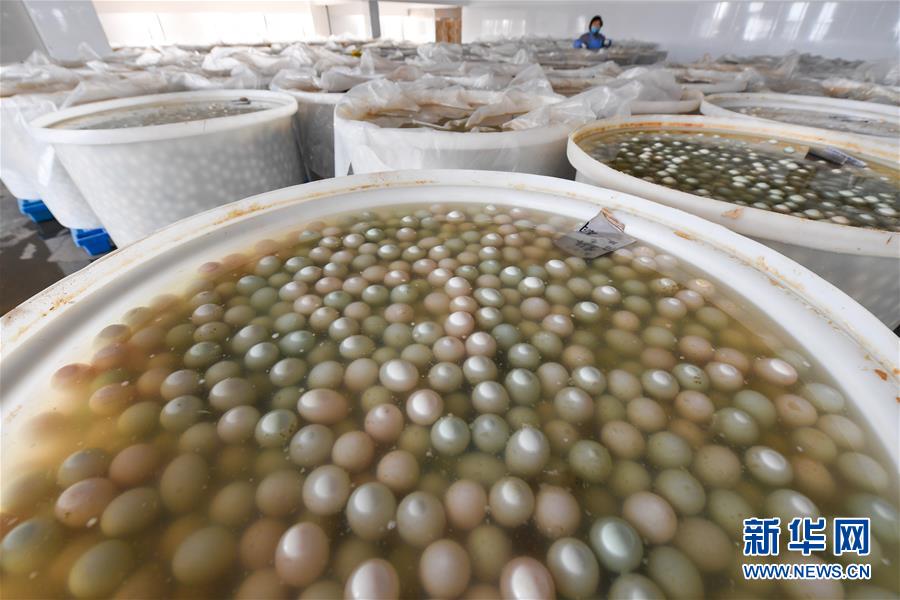 在江蘇高郵鴨集團(tuán)生產(chǎn)車間,腌制好的鴨蛋準(zhǔn)備進(jìn)行清洗包裝作業(yè)(4月15日攝)。“高郵鴨蛋”是江蘇高郵的特色農(nóng)業(yè)名片。近年來(lái),當(dāng)?shù)卦诹挤N繁育、生態(tài)養(yǎng)殖、產(chǎn)品加工等方面加大力度,推動(dòng)高郵鴨蛋品牌化建設(shè),讓小鴨蛋成為帶動(dòng)農(nóng)戶致富的大產(chǎn)業(yè)。2019年,高郵市共計(jì)生產(chǎn)熟制鴨蛋產(chǎn)品近11.2億枚,年產(chǎn)值近17.68億元。新華社記者李博攝