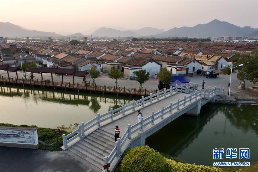 11月14日,行人經(jīng)過埭美村一座石橋(無人機拍攝)。新華社記者姜克紅攝