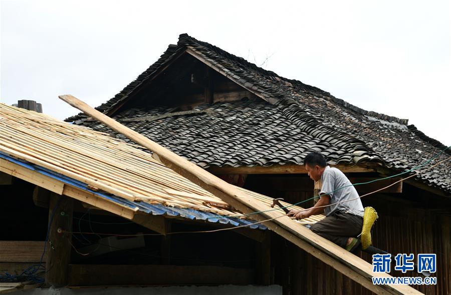 貴州省從江縣加榜鄉(xiāng)黨扭村村民在整治吊腳樓風(fēng)貌(4月16日攝)。貴州省從江縣把人居環(huán)境整治作為脫貧攻堅(jiān)工作的一項(xiàng)重要舉措來(lái)抓,對(duì)鄉(xiāng)村規(guī)劃范圍內(nèi)長(zhǎng)期無(wú)人居住的危房、廢棄禾倉(cāng)、棚圈、柴草房和房前屋后的殘?jiān)珨啾诘冗M(jìn)行清理整治,進(jìn)行復(fù)墾復(fù)綠,同時(shí)開(kāi)展農(nóng)戶衛(wèi)生和村寨環(huán)境整治,做到鄉(xiāng)村環(huán)境干凈、衛(wèi)生、整潔,扮靚美麗鄉(xiāng)村。新華社記者楊文斌攝