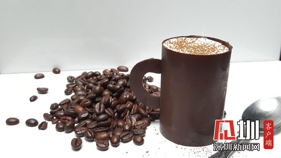 巧克力做的馬克杯蛋糕,看起來像是一杯咖啡。