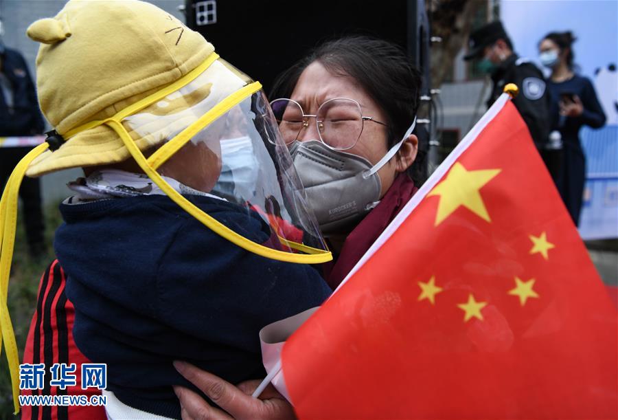 4月21日,在四川大學(xué)華西醫(yī)院,醫(yī)療隊隊員緊緊抱住許久未見的孩子。當日,來自四川大學(xué)華西醫(yī)院、華西第二醫(yī)院、華西第四醫(yī)院的醫(yī)療隊隊員解除隔離休整,與分別許久的家人、同事團聚,緊緊相擁。新華社記者王曦攝