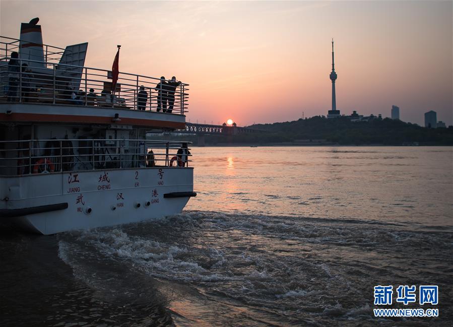 4月14日拍攝的武漢長江二橋附近夜景。新華社記者才揚(yáng)攝