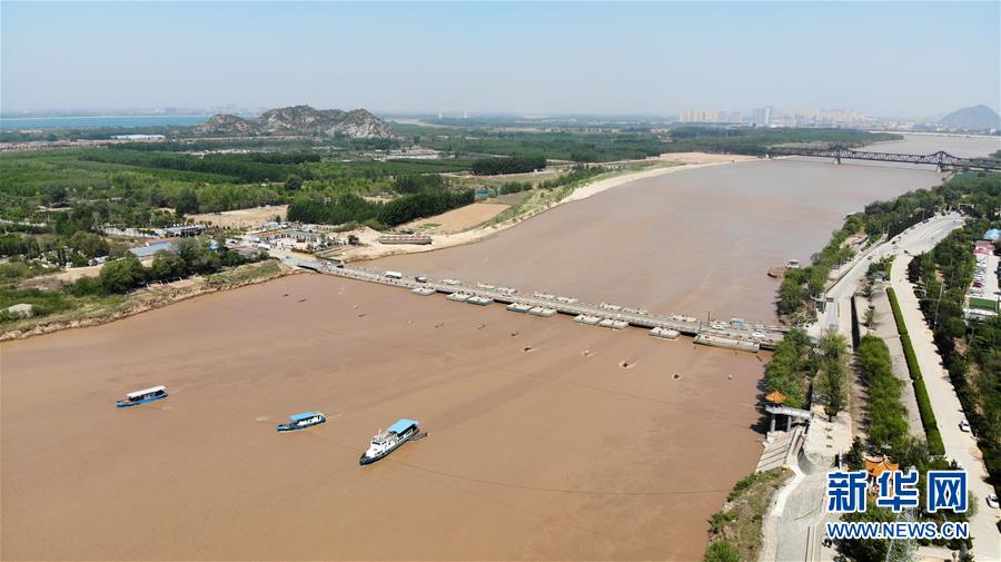 4月24日在山東濟(jì)南拍攝的黃河景色(無(wú)人機(jī)照片)。春暖花開的時(shí)節(jié),濟(jì)南黃河兩岸春風(fēng)送綠,大河、綠植與城市構(gòu)成了一幅春的畫卷。新華社記者王凱攝