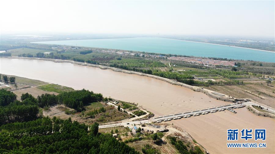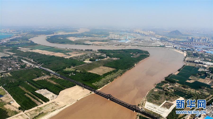 4月24日在山東濟南拍攝的黃河景色。春暖花開的時節(jié),濟南黃河兩岸春風(fēng)送綠,大河、綠植與城市構(gòu)成了一幅春的畫卷。新華社記者王凱攝