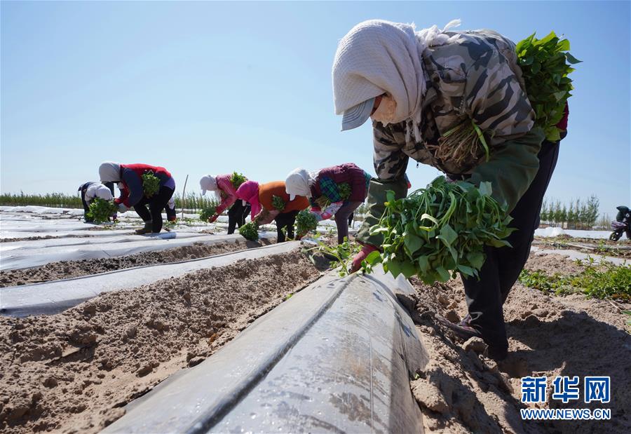 4月25日,灤南縣東黃坨鎮(zhèn)新戶村農(nóng)民在田間栽植煙薯秧苗。近年來,河北省灤南縣利用當(dāng)?shù)赝寥篮蜌夂蛱攸c,引導(dǎo)農(nóng)民因地制宜發(fā)展煙薯種植,取得良好效果。目前該縣煙薯種植面積達3萬多畝,每畝年收入達5000多元。新華社記者楊世堯攝