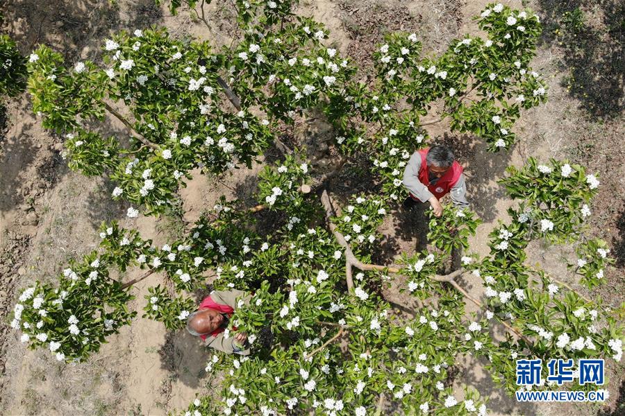 4月26日,農(nóng)民在河北省清河縣馬屯紅果種植專業(yè)合作社的山楂種植區(qū)內(nèi)為果樹疏花(無人機照片)。4月下旬以來,河北省清河縣2萬余畝山楂樹競相開花,成為一道亮麗的風(fēng)景線。清河縣年產(chǎn)山楂7.5萬余噸,山楂種植已成為當(dāng)?shù)剞r(nóng)民的重要增收途徑。新華社記者牟宇攝